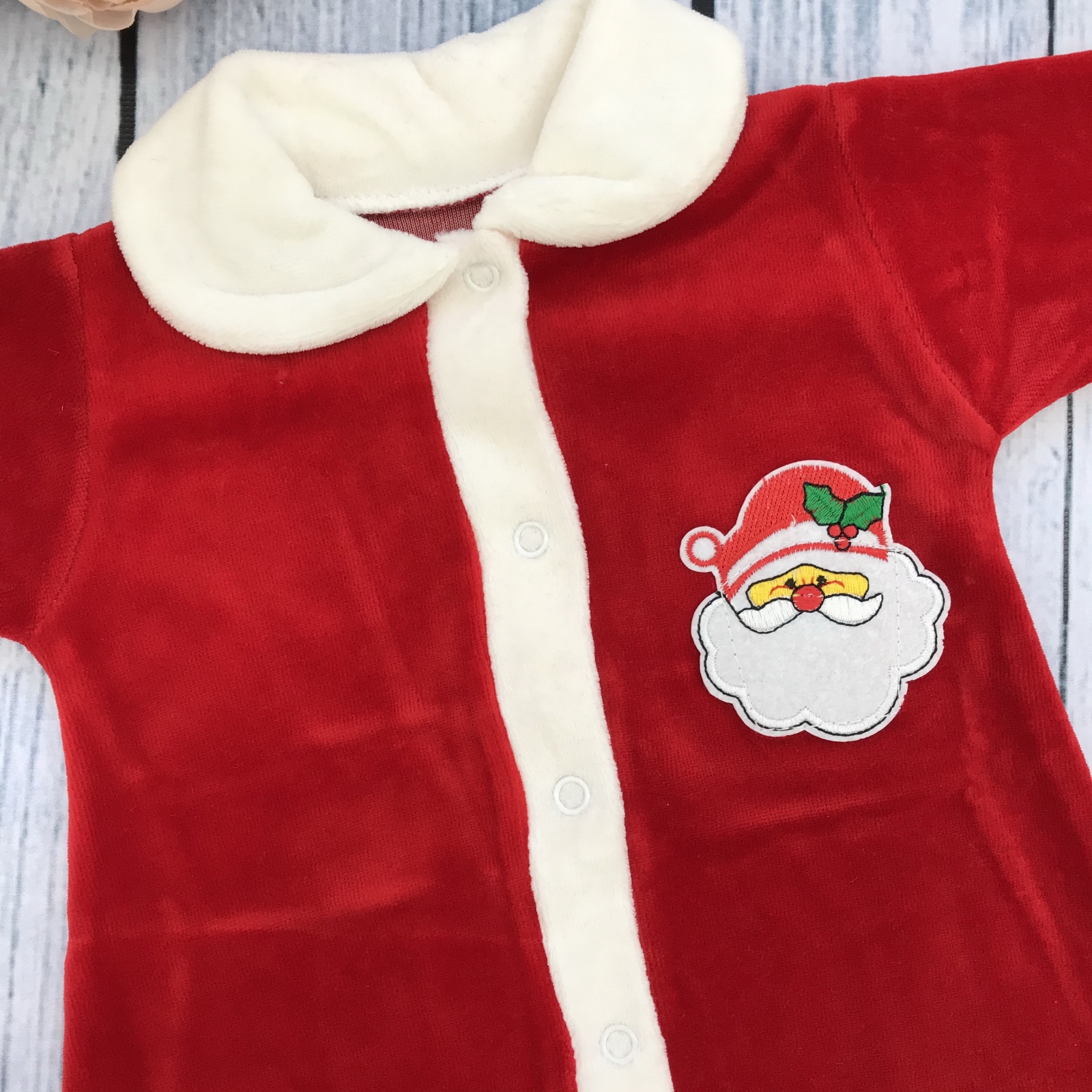 Теги: Купить оптом новогодний комбинезон от производителя. 242. Комбинезон Санта, хлопок 80% велюр 20% ПЭ 56,62,68 цена,отзывы официальный сайт "Стеша Псков"