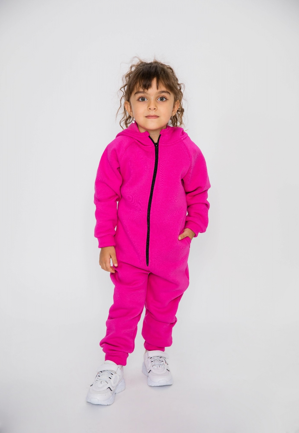 318-Ф. Комбинезон на молнии с капюшоном, фуксия, хлопок 65%, 35% ПЭ, 3 нитка толстовка (начёс) 86,92,98,104